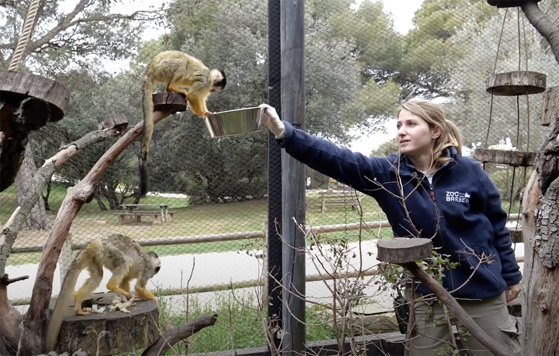 Pauline, soigneuse animalière sur le secteur primates, nous présente sa journée de travail et les pensionnaires dont elle prend soin : les gibbons, les ouistitis à pinceaux, les tamarins pinchés, les capucins et les saïmiris