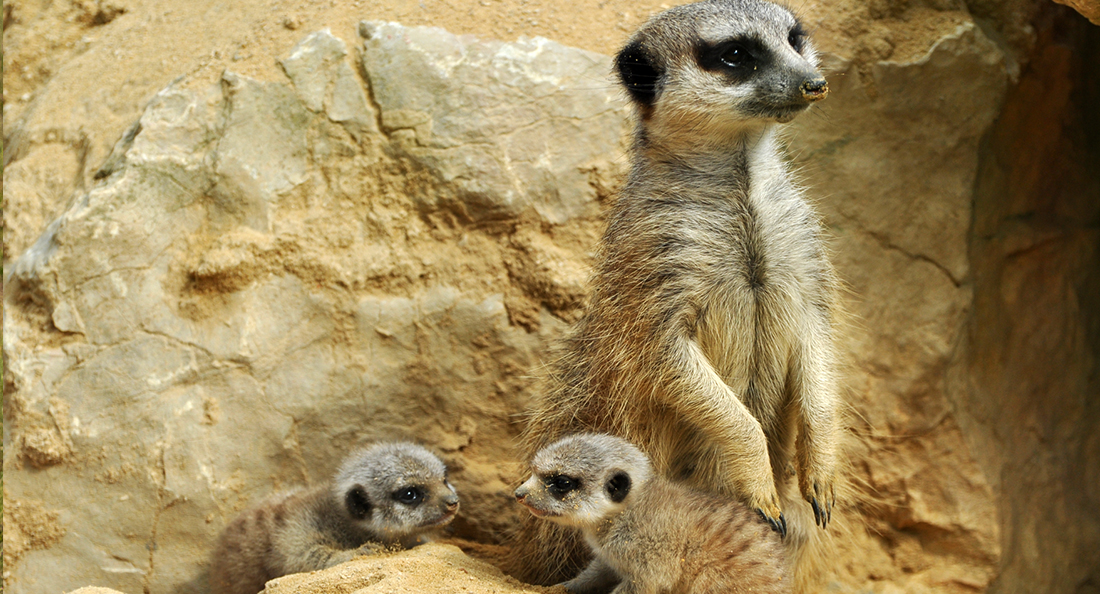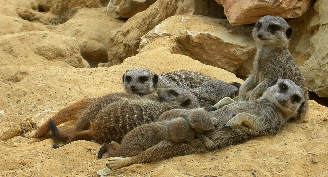 Toutes petites mangoustes, les suricates sont connus pour leur comportement de sentinelle. En effet, il y a en permanence un des membres du groupe qui fait le guet, pendant que les autres vaquent à leurs occupations : en cas de prédateur potentiel, il les avertira d’un cri puissant ! Si le prédateur passe à l’attaque, tout le groupe agit collectivement pour se défendre.
